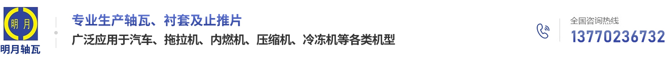 大丰市明月轴瓦有限公司位于著名的麋鹿故乡,全国生态示范市、国家级港口城市江苏大丰。公司所在地交通便捷,大丰港、沈海高速(G15)、新长铁路、G204环绕周边,我公司自1998年创办企业以来专业从事轴瓦制造,所引进的设备具有效率高,加工范围广,并聘请专业技术人员,不断推出更新更优的产品和服务,把塑造明月品牌形象作为企业目标。 我厂技术力量雄厚,管理手段科学严谨,目前专业生产轴瓦、衬套及止推片,广泛应用于汽车、拖拉机、内燃机、压缩机、冷冻机等各类机型,与众多主机厂建立了良好的配套关系,产品受到配套企业和销售商的一致好评。 明月牌轴瓦以优质的轴瓦原材料,精良的加工工艺,成就卓越的产品品质,热忱欢迎新老客户惠顾。