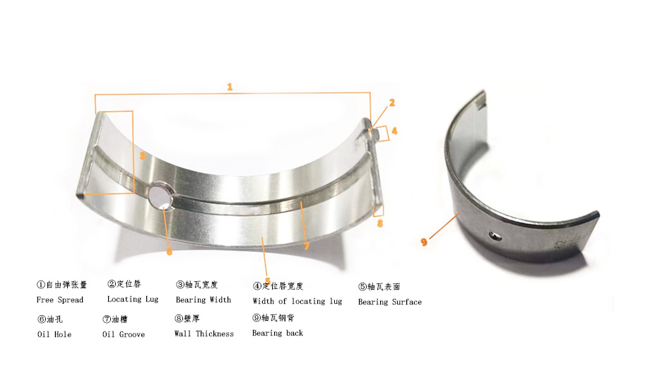 油槽(⑦):承担着润滑油的储存与均匀分布功能。通过巧妙的油槽设计,润滑油可在轴瓦工作表面形成均匀油膜,让每一处摩擦区域都能得到充分润滑,保障了轴瓦在全工况下的高效传动性能。